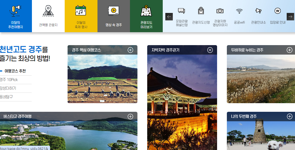 경주 문화관광 사이트에서 경주 여행 노선, 버스 타고 여행하기 등 다양한 여행 정보들이 있으니 참고해 보시는 것도 좋을 것 같아요. 아래 버튼을 클릭하면 사이트로 이동할 수 있어요.